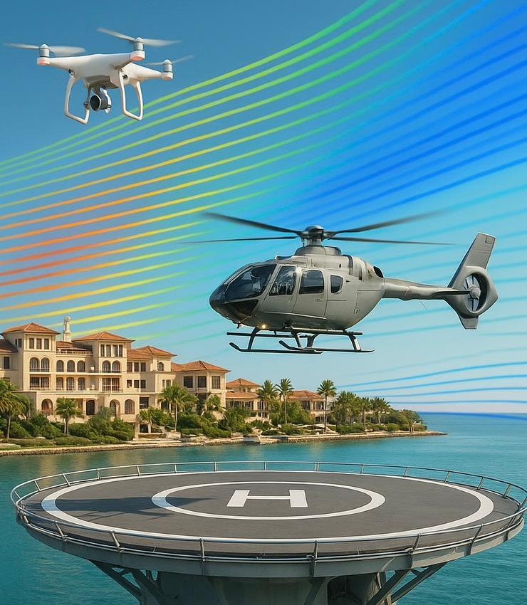 Computational Fluid Dynamics (CFD) analysis is essential when designing vertiports, helidecks, and heliports because it provides a precise understanding of airflow behavior, turbulence patterns, and exhaust gas dispersion around the landing area. These aerodynamic factors are critical for ensuring safe and efficient aircraft operations, particularly during takeoff and landing in complex urban or offshore environments. Traditional design approaches can’t accurately capture how surrounding structures, wind flow, and thermal effects interact, whereas CFD allows engineers to model and optimize these conditions before construction. In essence, CFD transforms design uncertainty into aerodynamic assurance – making safer skies start from the ground (or deck) up.